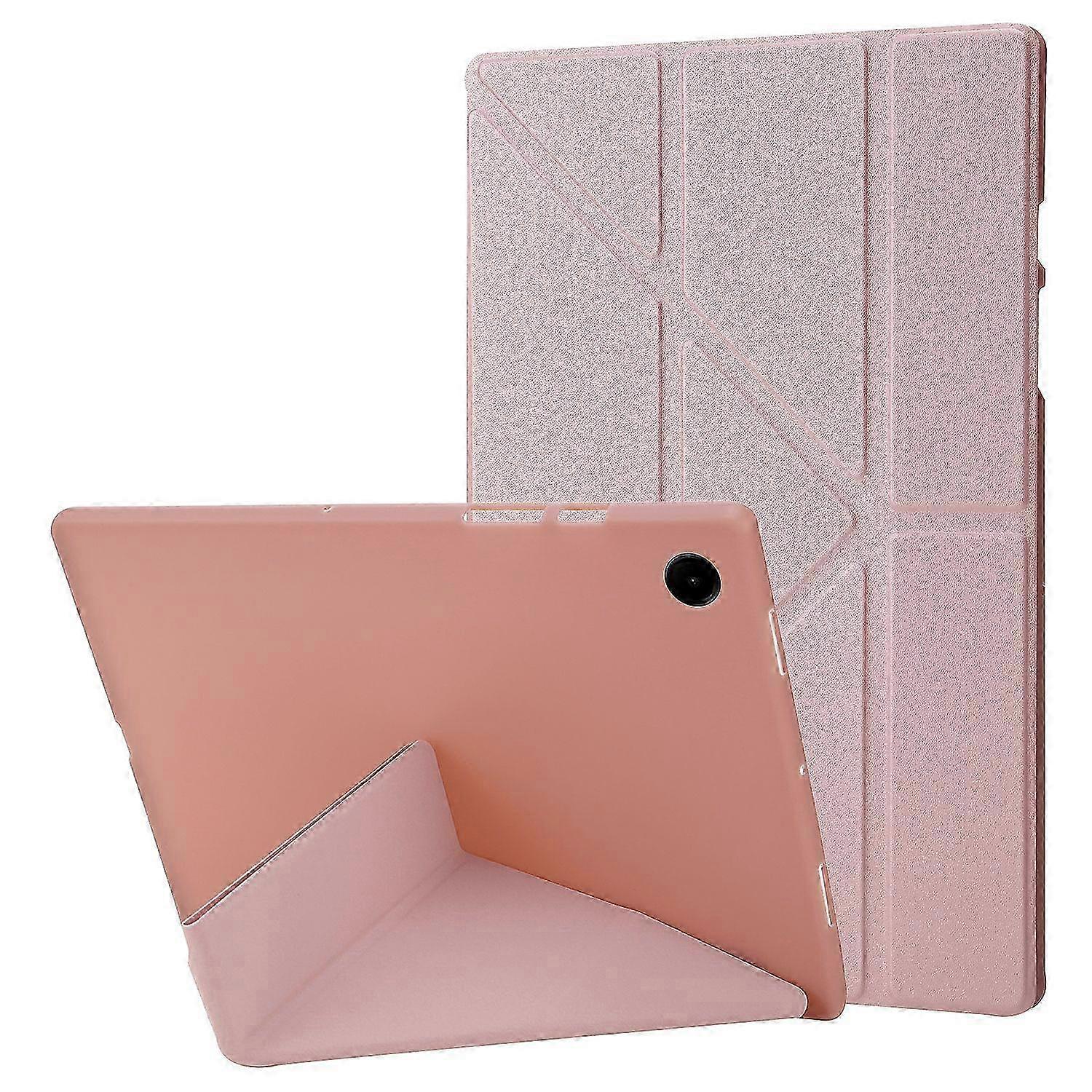 For Samsung Galaxy Tab A9 Case PU Leather+Silicone Cover with Origami Stand - Rose Gold