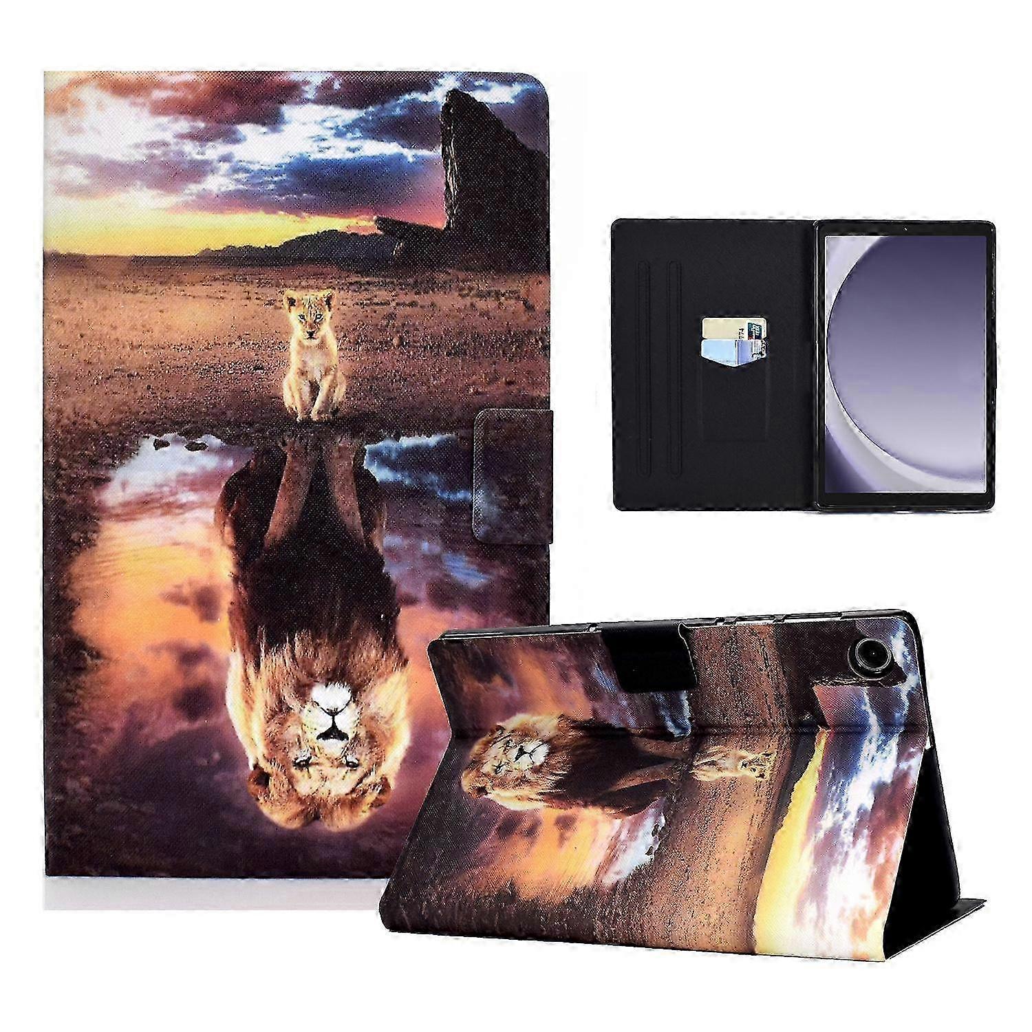 For Samsung Galaxy Tab A9+ Case PU Leather+TPU Tablet Cover with Card Slot - Lion and Leopard