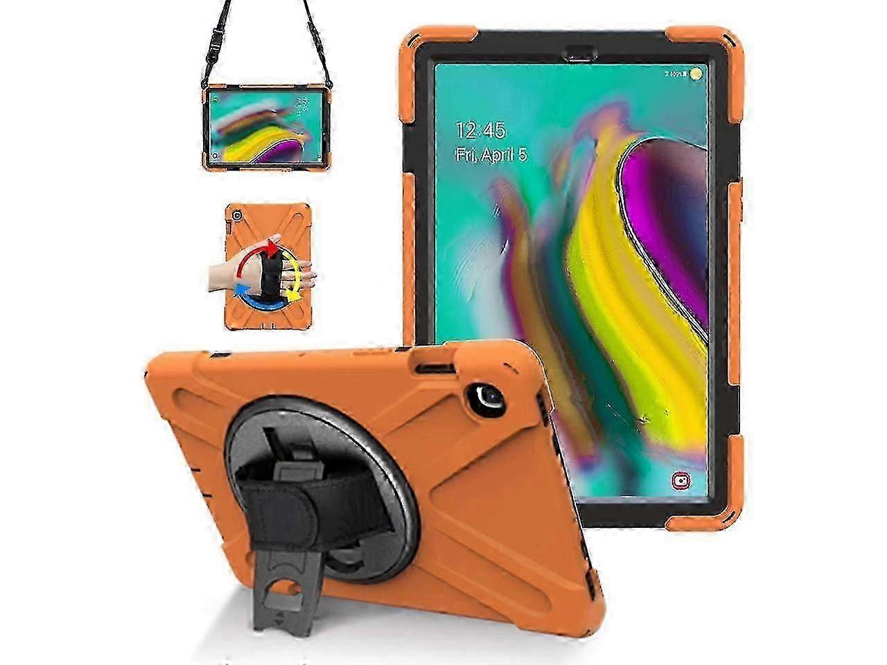 Features: Designed For Samsung Galaxy Tab S5e 10.5 Inch 2019 Released, Model: SM-T720/SM-T725/SM-T727 POWERFUL PROTECTIVE FUNCTIONThis galaxy tab s5e case has a triple-layered construction: an inner hard polycarbonate shell, a soft silicone outer shell and a front frame, Precise cut allows full access to all ports, functions and buttons. It protect your device from scratches and bumps without adding bulk. BUILT-IN-KICKSTAND AND 360 DEGREES ROTATABLE HAND-STRAP: The galaxy tab s5e 2019case has a built in kick stand on the back for hands free use and viewing of movies and videos. The adjustable hand-strap is Ideal for students, doctor, teachers or anyone else who needs iPad in work or study. EASY TO CARRY: The galaxy tab s5e 2019 case includes an adjustable and removable shoulder strap that can be worn around the shoulder. You can also can hang it behind the seat in the car or on the wall in the kitchen for personal viewing. Compatibility: Designed for Samsung Galaxy Tab S5E 10.5inch 2019 released, (Model: SM-T720/SM-T725/SM-T727) Attention: - - Not for Samsung Galaxy Tab S6 10.5 inch SM-T860/T865/T867 2019 released. - - Not for Samsung Galaxy Tab S6 lite 10.4 inch SM-P610/P615 2020 released Adjustable Hand-strap Whether it is a child or an adult, you can adjust the tightness of the strap so that users comfortable to master their own tablet. The hand strap can also rotate along with the turntable in the middle. Infinite viewing angles Infinite viewing angles. Vertical? Horizontal? Halfway between? There are no limits, here. Place your Galaxy Tab S5e at any angle you want. Whether youandrsquo;re reading, typing, or just bringing on your favorite TV show, our SM-T720 caseandrsquo;s adjustable stand does it all. Adjustable shoulder belt The shoulder belt is adjustable and removable. Your tablet can be slung diagonally or slung over one shoulder, even hung in front of your backseat. Let your backseat passengers enjoy convenient tablet viewing from the back of your car's headrest posts. Qandamp;A: Q- What is this case fit for? A- This case fit for Samsung galaxy tab S5e. This tablet is released at 2019, 10.5inch, Model is SM-T720 /T725/T727. This case not ft for any other samsung tablet. Q-Can you still use glass screen protector? A-You can use the screen protector thickness is 0.33mm with our case. Q- How do I assemble it? A- Please find it at Related Video Shorts and watch the instructions video. Q- What is the difference between Carrying case and the other carrying case. A- All the products have been checked carefully before send out. We have large stock in Warehouse and lots of colors available. Note: Due to the light and screen setting difference, the item's color may be slightly different from the pictures. Please allow slight dimension difference due to different manual measurement.