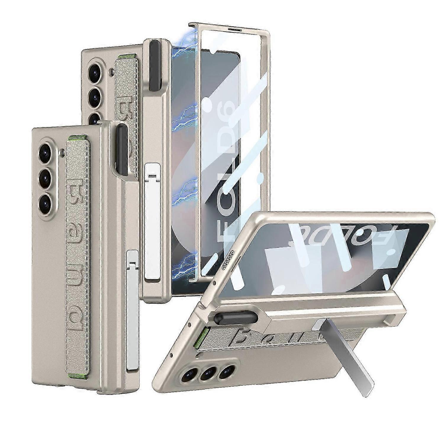 For Samsung Galaxy Z Fold 6 Case with S Pen Holder & Kickstand,Front Screen Protector, Magnetic Hinge Protection