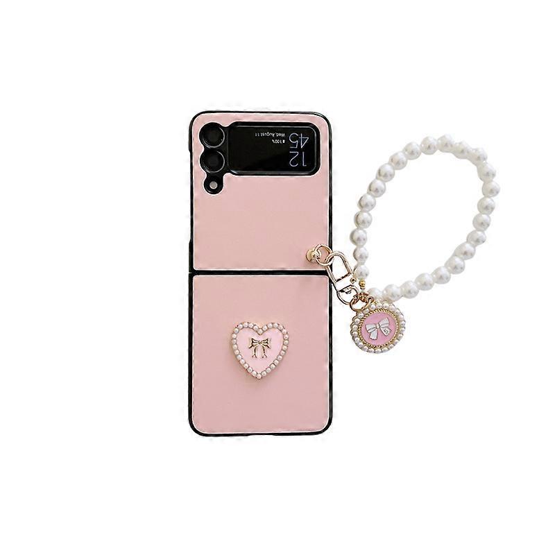Suitable For Samsung Zflip4 Phone Case Design, With Cute Bow Girl Heart Shaped Phone Case, Women's Detachable Pearl Bracelet