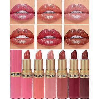 6pcsスパークリンググリッターリップスティックセット、女性用長持ちするシマーメタリックリップスティック、ダイヤモンドグリッターリップスティックシャイニーノンスティックリップグロス unbrand