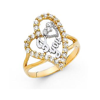 14k kelta- ja valkokultainen koristesormus, koko 7, naisten sormus - 2,0 grammaa