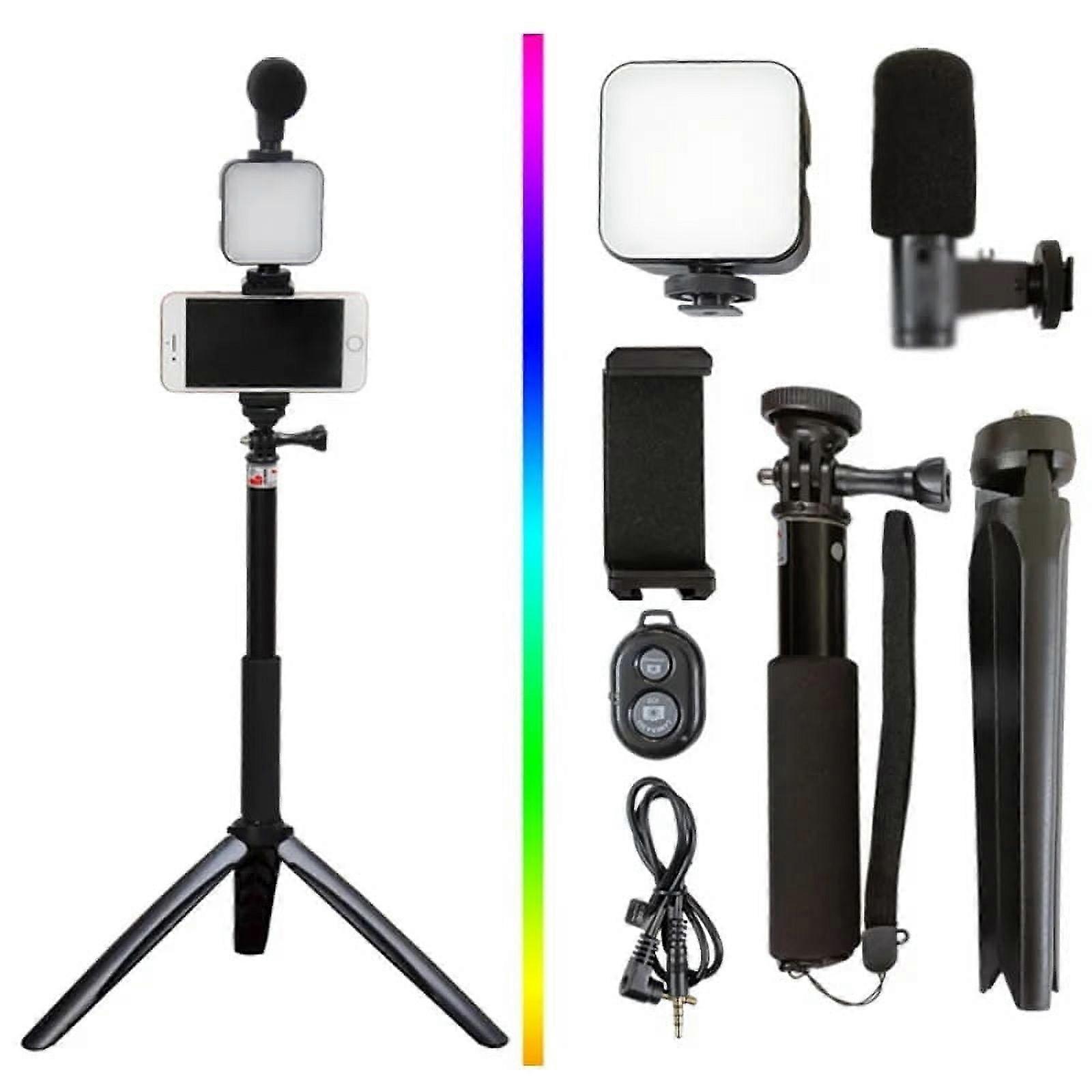 Selfie Photography Video Handheld Vlog Stand Tripod Stabilizer Kit LED Light Microphone Remote Shutter Phone Camera Video Record