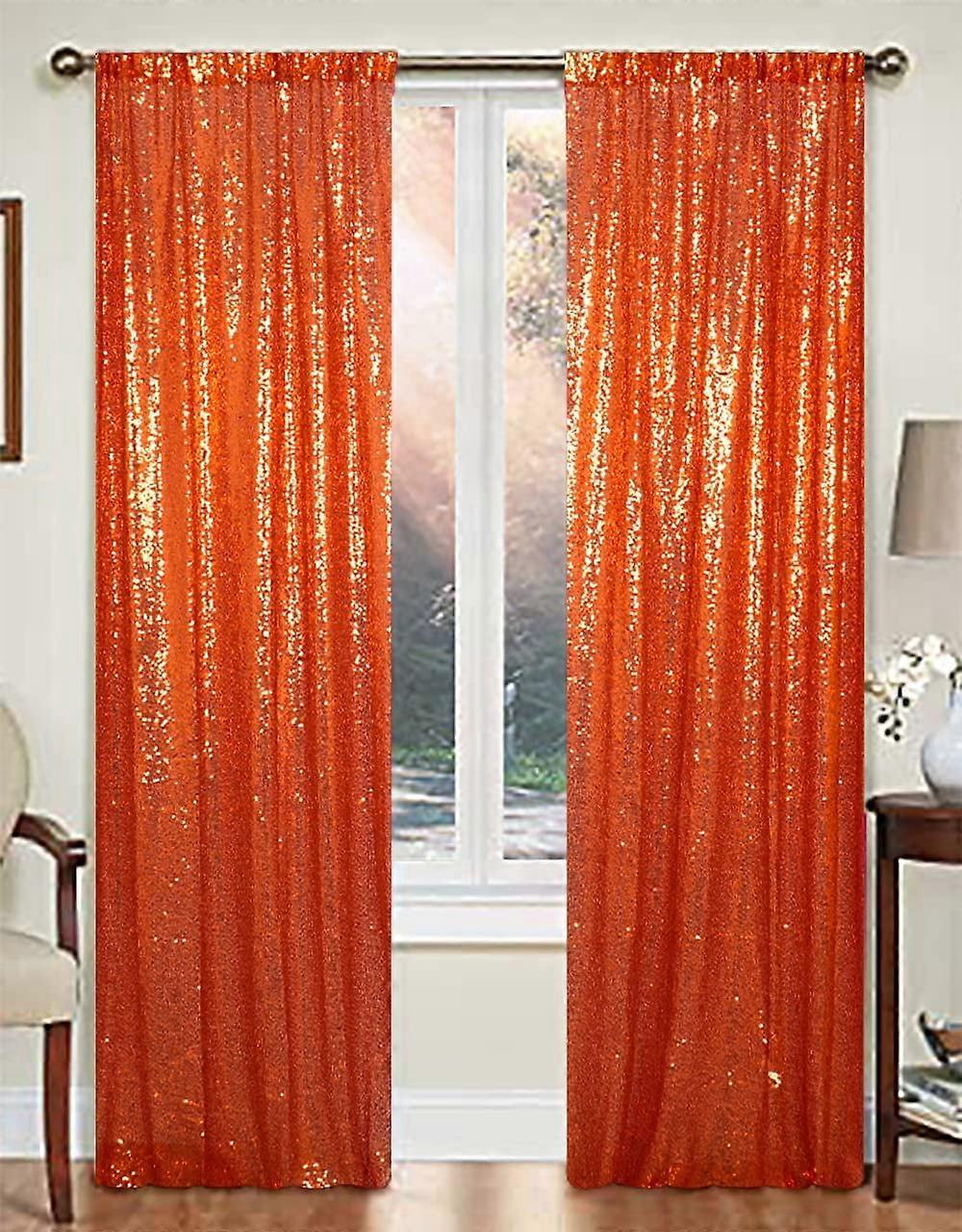 Sequin Curtains 2 Panels 2FTx8FT Orange Sequin Curtain Backdrop Sequin Window Curtains Photography Backdrop