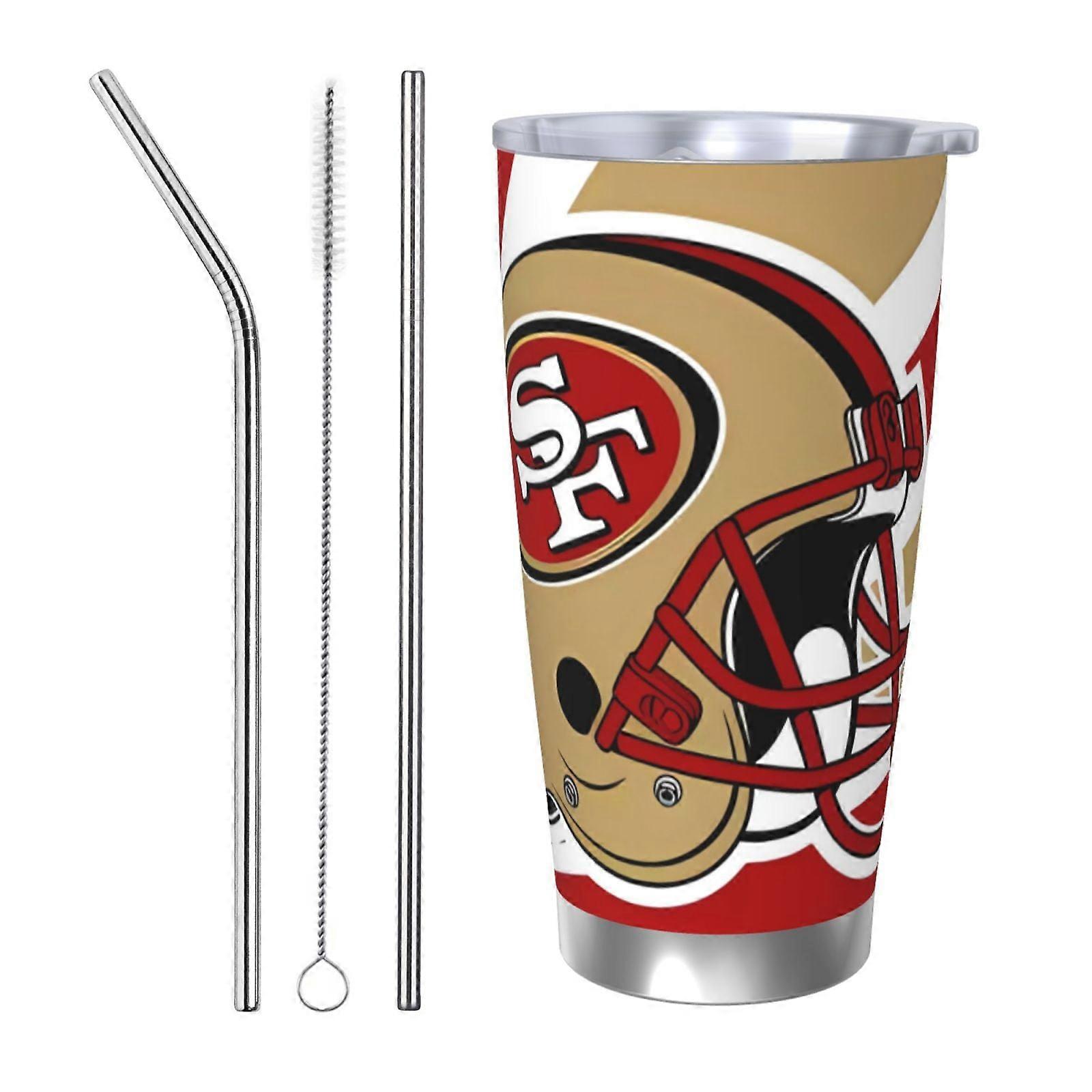 SF 49ers Football Theme 20oz Stainless Steel Thermos Cup with Lid & Straw - Durable Hot/Cold Drink Cup for Car, Sports & Gifts
