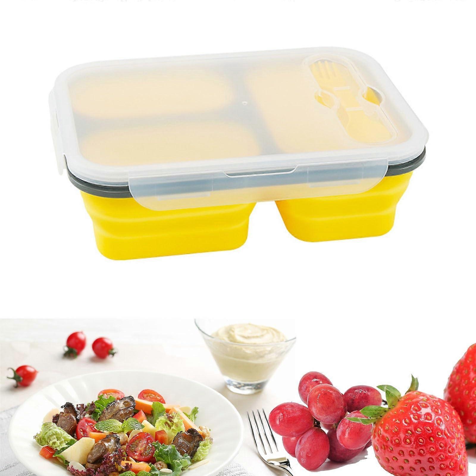 Silicone Collapsible Bento Box With Tableware Set, Portable Folding Food Storage Container, Yellow