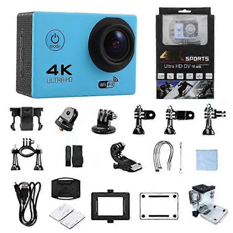 Waterproof case that allows you to film fascinating water sports, water resistant up to 30 meters underwater 120 degree high definition wide angle lens Video resolution up to 4K@30fps 2.0-inch high-definition color screen Unique slow photography function High color reproduction, good image transparency WiFi video recording works for more than 1.5 hours Specifications: DSP: JL Linktone Sensor: 0308 Video resolution: 4K@15fps//1920*1080 30fps /1280*720 120fps /1280*720 60fps /1280*720 30fps Photo resolution: 12M/10M/8M/5M Lens: 120° HD wide-angle lens Exposure: Auto Sensitivity: Auto, 100, 200, 400, 800, 1600 White Balance: Auto (default), Sunny, Cloudy, Incandescent, Fluorescent Digital zoom: 4X Photo mode: normal photo; timed photo; automatic photo; motion track photo Video mode: normal video; loop video; time-lapse video Slow photography: 1080p 60fps, 720p 120fps (Default) Display: 2.0" LCD (960*240) Image format: JPEG Video format: MP4 Video compression format: H.264 Data connection: Micro USB2.0, HD (Optional) Extended memory: MAX to 64G, for Micro SDHC Power supply: 5V/1A Indicator light: blue working indicator, yellow WIFI indicator, red charging indicator Microphone: built-in Speaker: built-in Battery capacity: 900mAh Recording time: 1080P/About 90 minutes Charging time: About 2 hours WIFI: 802.11b/g/n Languages: English, Simplified Chinese, Traditional Chinese, Korean, Russian, French, German, Italian, Spanish, Portuguese, Japanese Operating System: Windows XP/7/8 SP3/for Vista and for Mac 10.5 or above Dimensions: 59*41*29mm Working temperature: -10℃~+55℃ Storage temperature: -20℃~+70℃ Relative humidity: 5% to 95% (no frost) Waterproof grade: 30 meters underwater Application: extreme sports, outdoor sports activities, cycling, diving, etc.