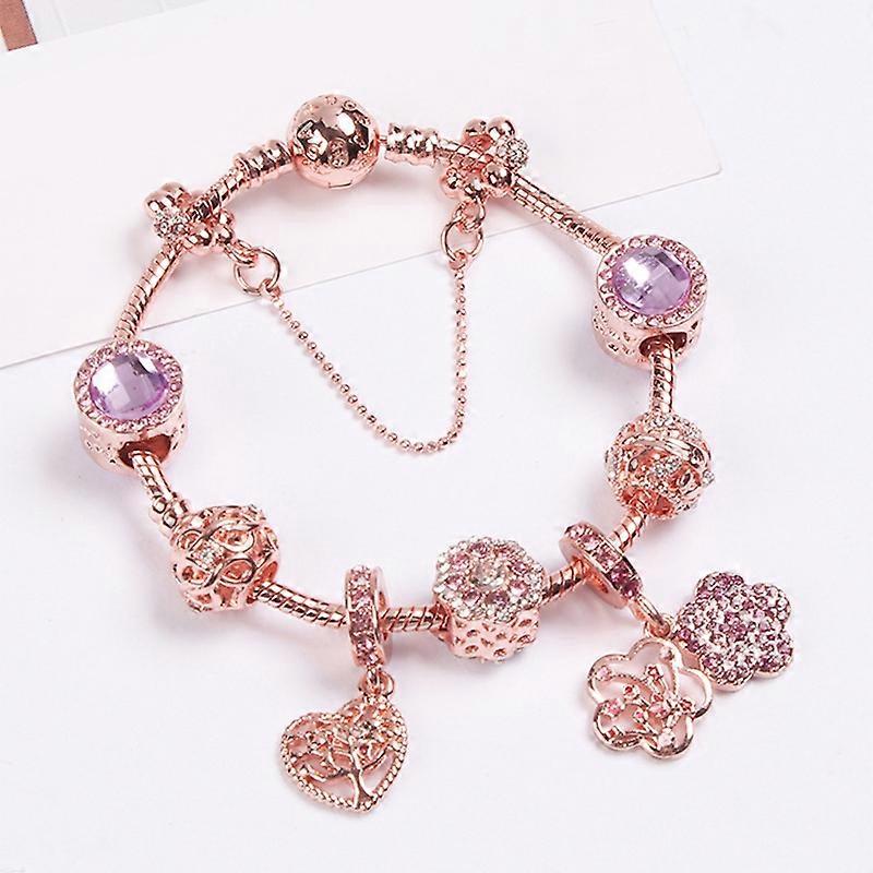 SL125 19cm Women Rose Gold Beaded Bracelet 1. Material: alloy, zircon 2. Style: women 3. Features: diverse shapes, versatile personality, crystal clear zircon, glowing charming brilliance, comfortable to wear, hand-inlaid technology, smart effects, exquisite workmanship, and no damage to the skin 4. Length: 181920 cm 5. Weight: about 20 grams