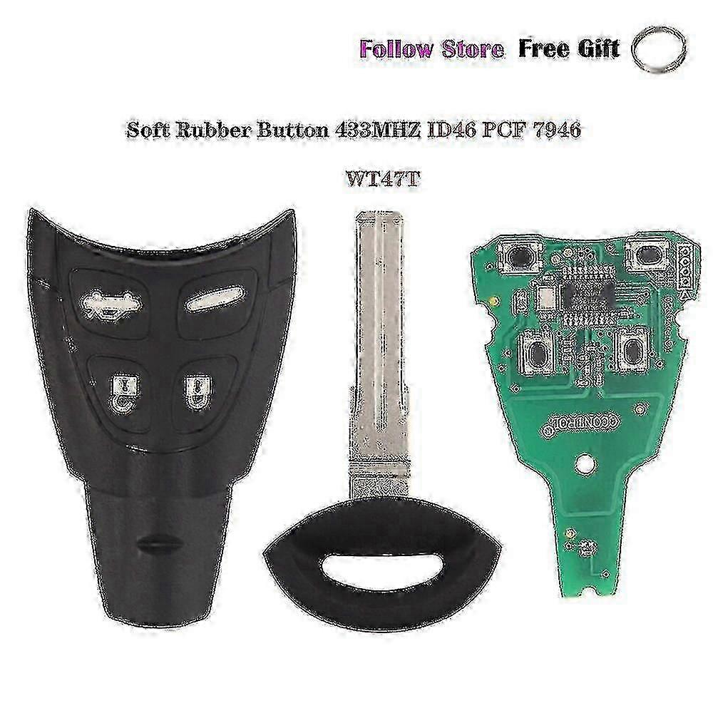 Smart Remote Car Key Fob with 434MHz Frequency for Saab 93, 95, 9-3, 9-5 Models 2003-2010 with ID46 Chip & Soft Rubber Pad Case Replacement