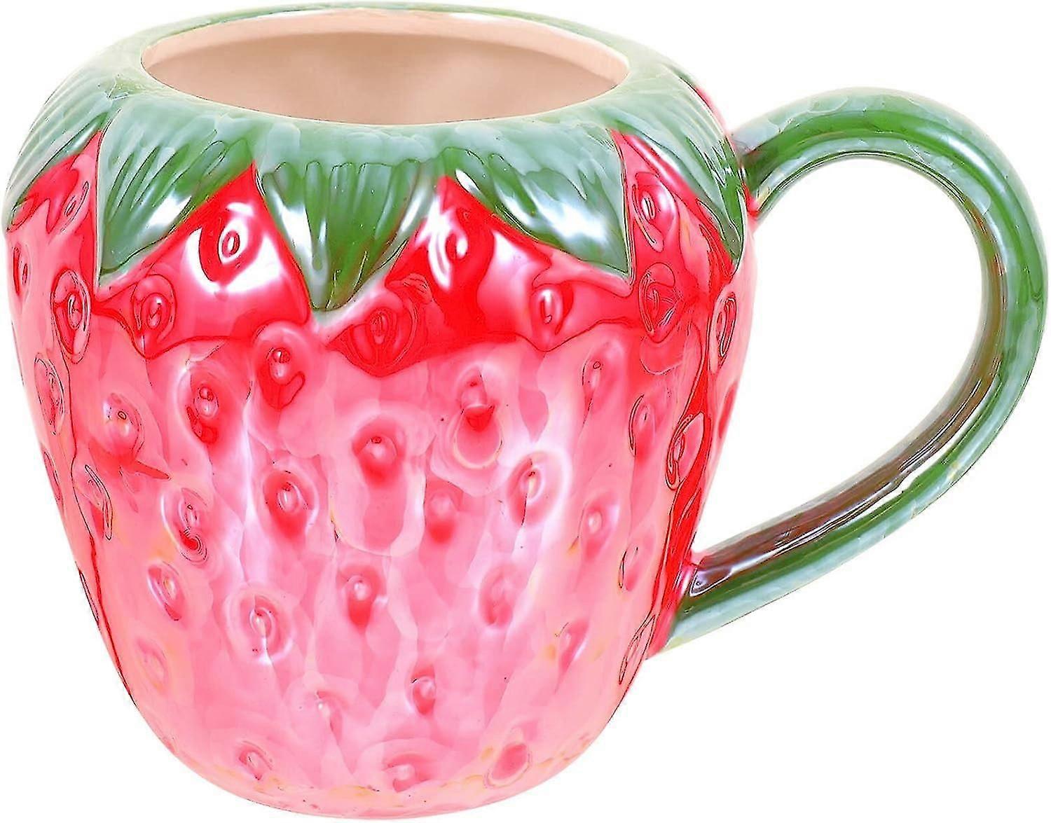 SNQTV-Strawberry Ceramic Coffee Cup Porcelain Strawberry Cup With Handle Cute Fruit Milk Drink Container Pair Coffee Cup Gift For Girls Strawberry Lov