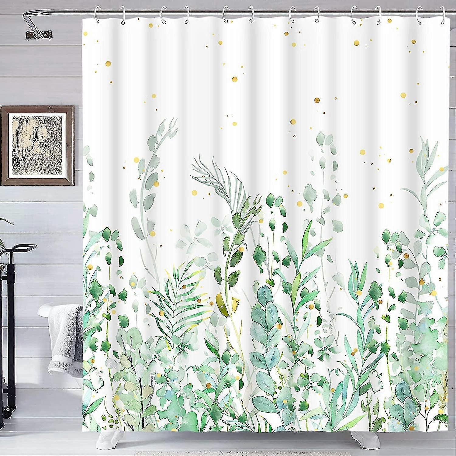 SNQTV-Floral Shower Curtain, Green Shower Curtain, White And Teal Shower Curtain With 12 Hooks, Plant Leaf Botanical Shower Curtain, Waterproof Shower