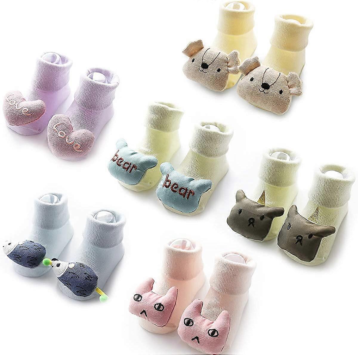 SONARIN 6 Paris Toddler Girl Boy Anti-slip Floor Socks Baby Slipper Socks Dimensional cartoon Baby Girls Anti-slip Cotton Socks Animal doll 0-6 Months
