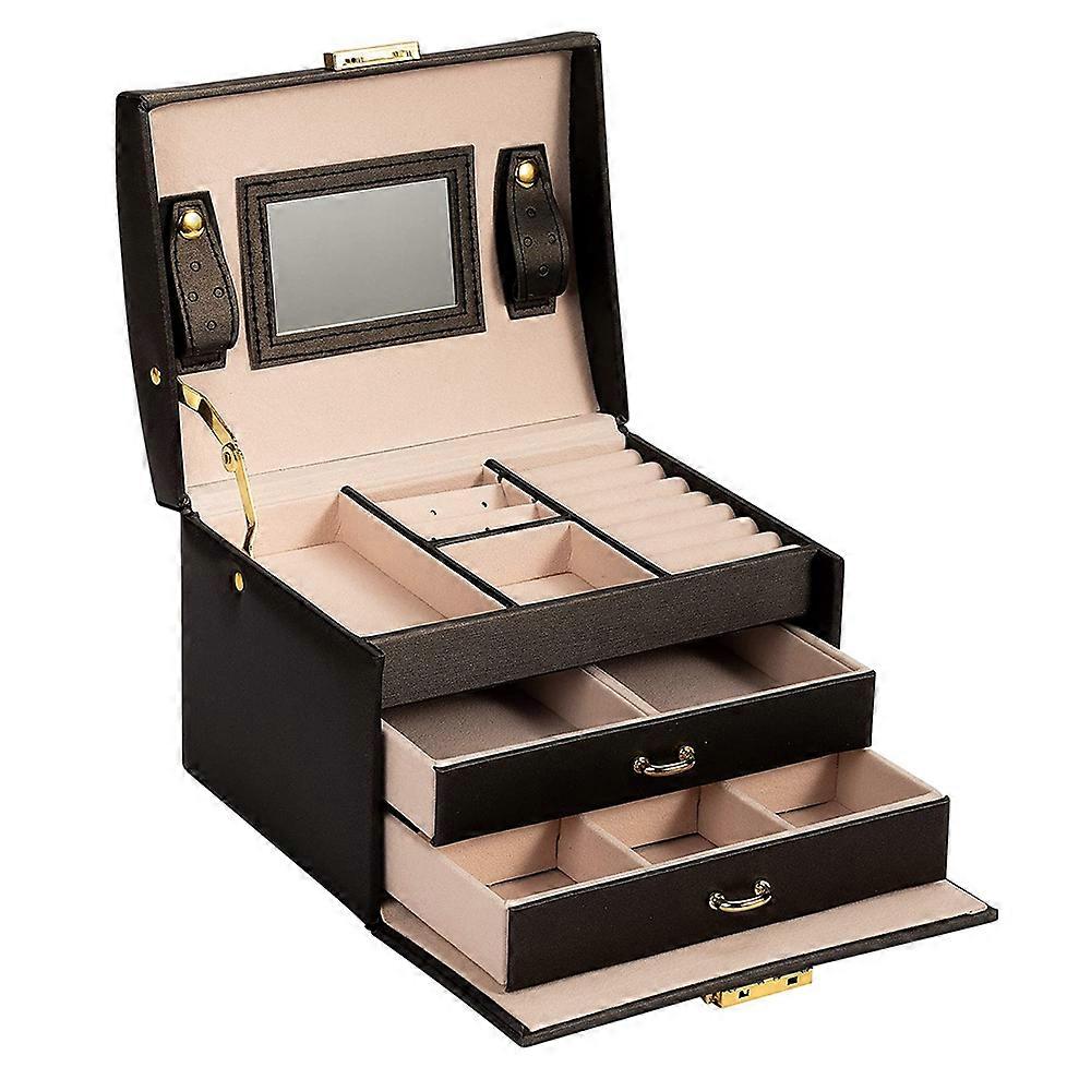 Lots of storage space!3 levels, 8 rollers for rings, 12 small compartments, 4 narrow compartments and 2 pull-out drawers.Robust wood material, soft velvet on the outside and inside.Classic velvet cover, neatly finished seams and silver handles.This stylish jewelry box is perfect as a gift for all those dear friends who own a lot of jewelry.A 23.2 x 20.5 x 14 cm jewelry box.
