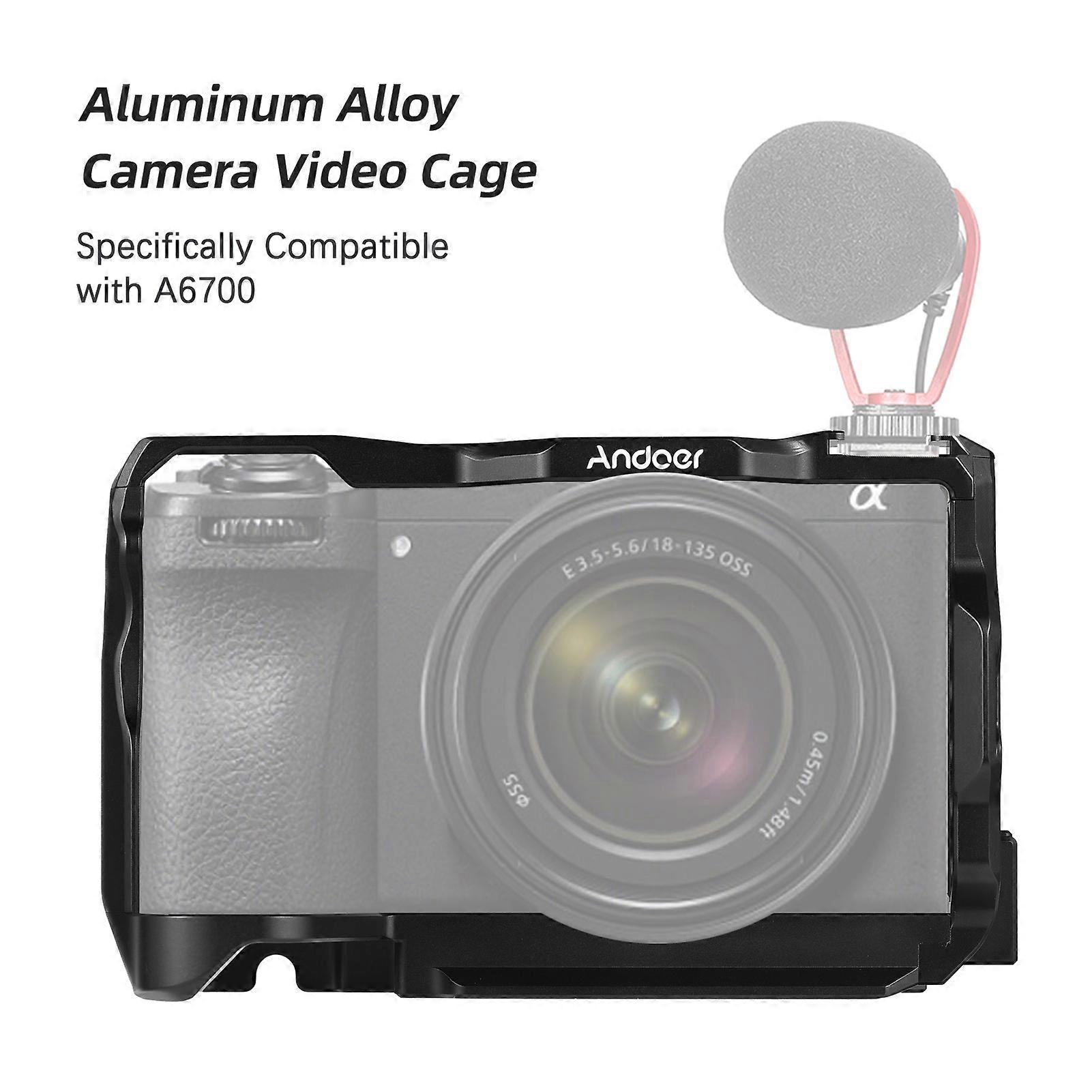 Robust Camera Cage Engineered from high-quality aluminum alloy, the Andoer camera cage provides exceptional durability and protection for your Sony A6700. Its oxidation-resistant finish ensures long-lasting use, safeguarding your camera from the rigors of continuous shooting while maintaining a sleek, professional appearance.