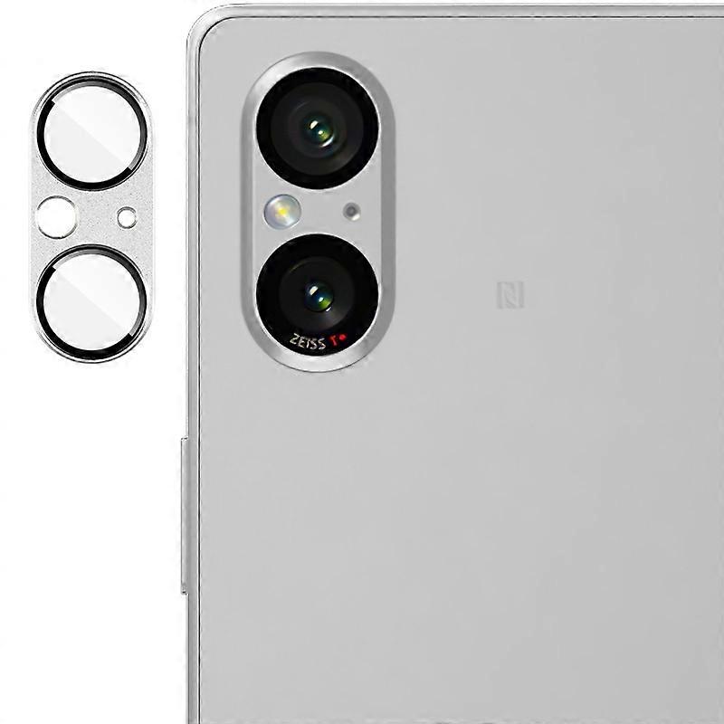For Sony Xperia 5 V Camera Rear Lens Protector Anti-scratch Metal+Tempered Glass Lens Film-Silver