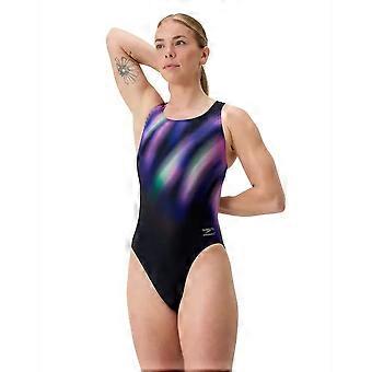 Speedo Club Training Printed Powerback Swimsuit - Black/Purple