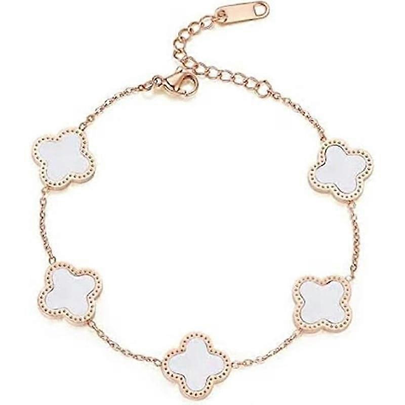 SQCLV Four-Leaf Clover BraceletWomen's Titanium Steel Bracelet, Exquisite Enamel Jewelry,Lucky Symbol, Jewelry Suitable for Girls and Ladies (white)