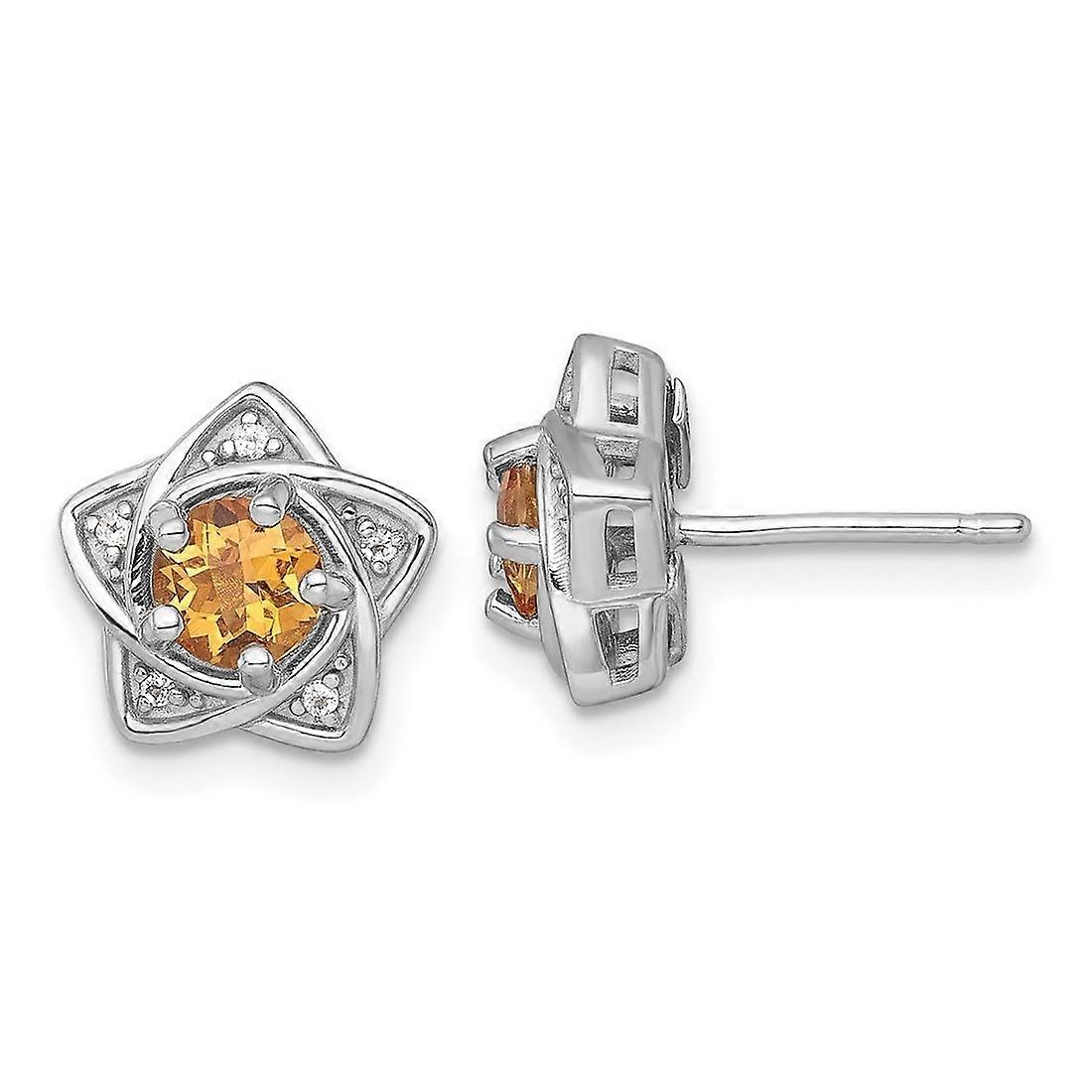 Ss Rhodium Plated Polished Citrine and White Topaz Star Post Earrings 10.5x10.5mm Wide Stud Earring for Women