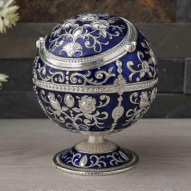 SSRGV blue silver roseVintage Windproof Ashtray with Lid,Metal Decorative Cigarettes Ashtray for Outdoor Indoor,Unique Tabletop Ashtray for Home Hotel