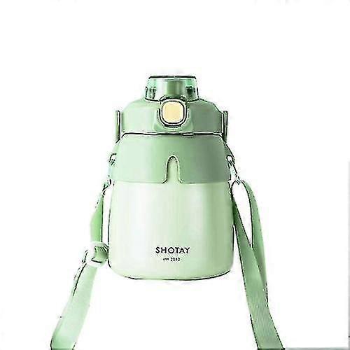 St-8063 Children's Big Belly Water Cup Stainless Steel Thermos Cup Cute Strap Water Bottle (green)