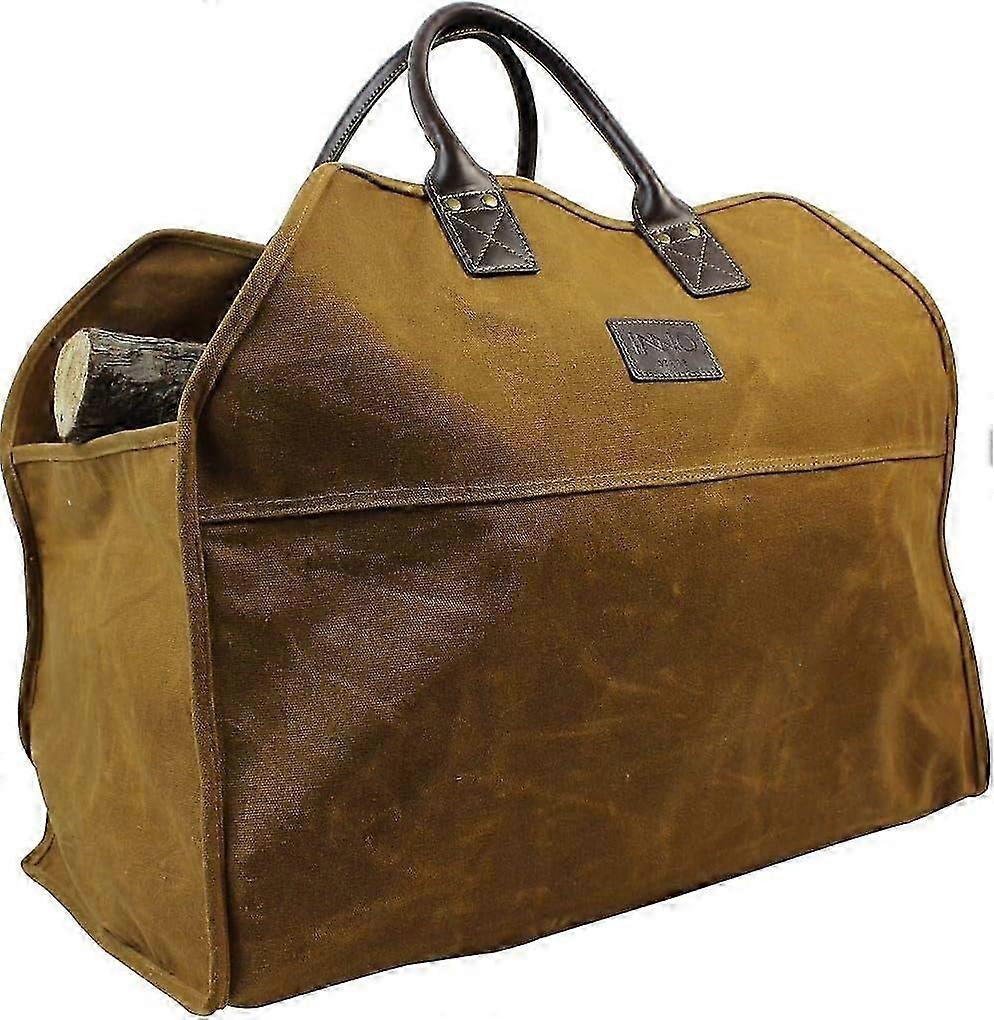 STAGE Heavy Duty Wax Canvas Firewood Bag - Large Durable Log Carrier, Rust-Resistant Eco Tote