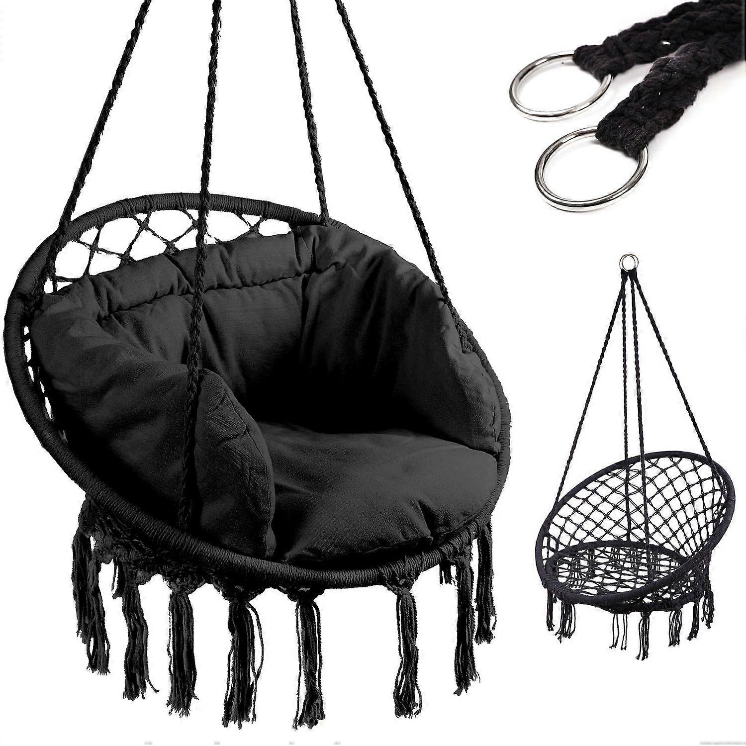 Storkbo fåtöljgunga med ryggstöd svart 80cm + dynor