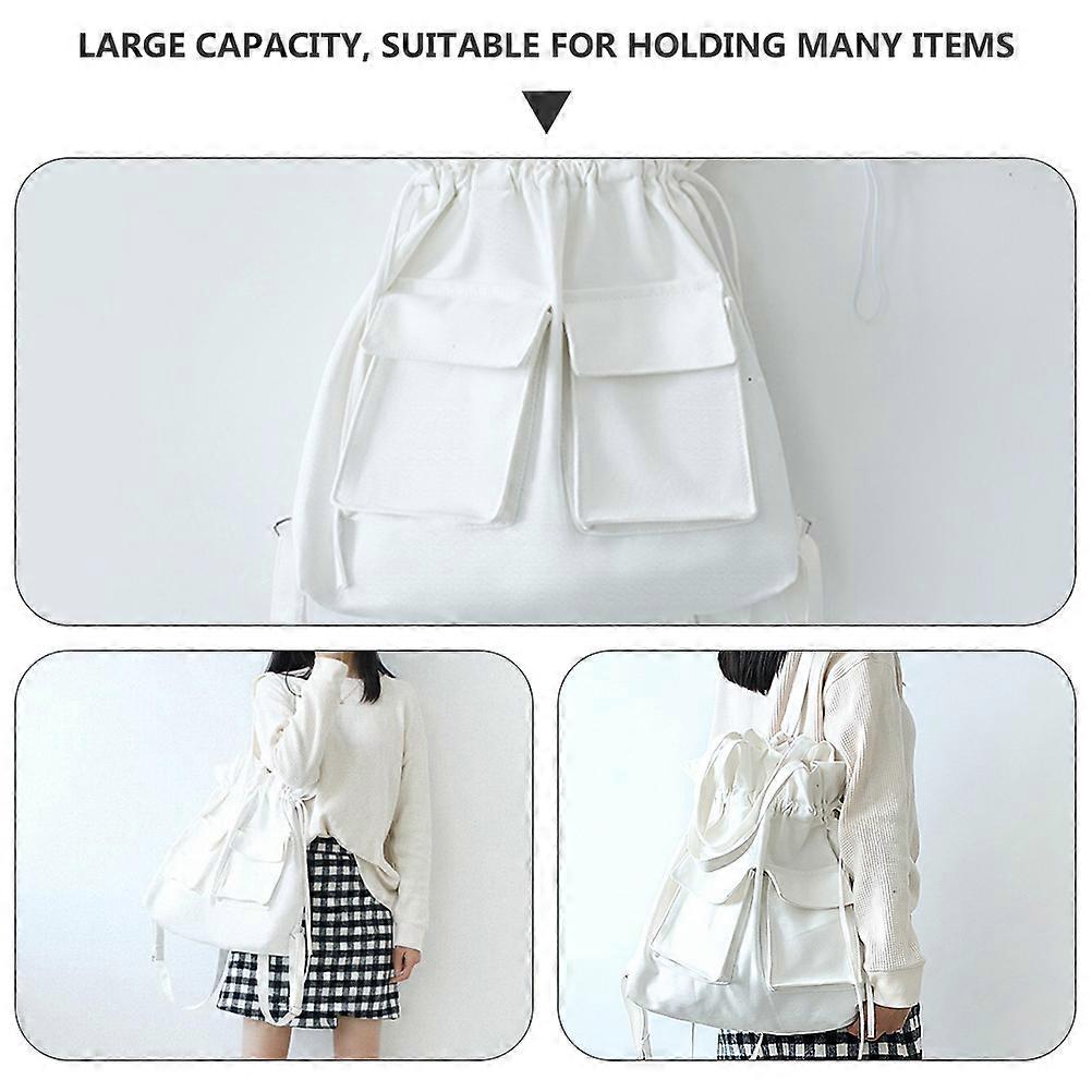 Students Canvas Drawstring Backpack for Storage 1Pcs White Polyester Bag
