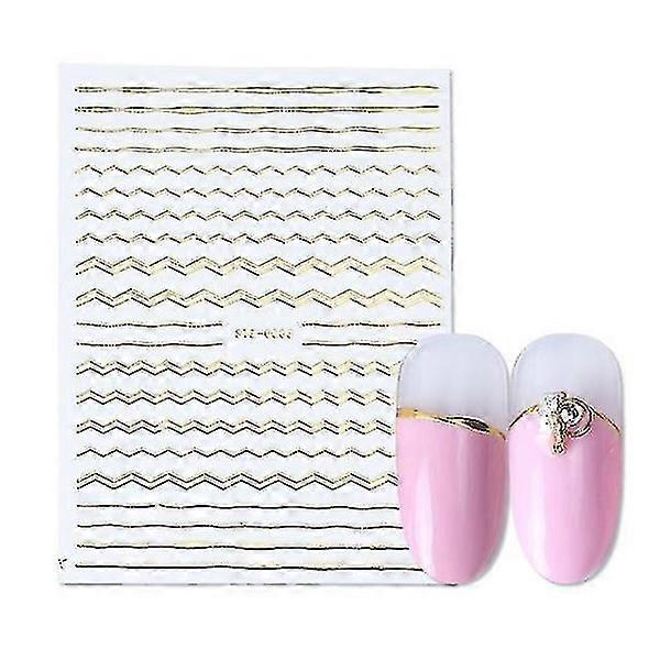 STZ G003 Gold 3d Nail Art Stickers straight curved waves liners Stripe