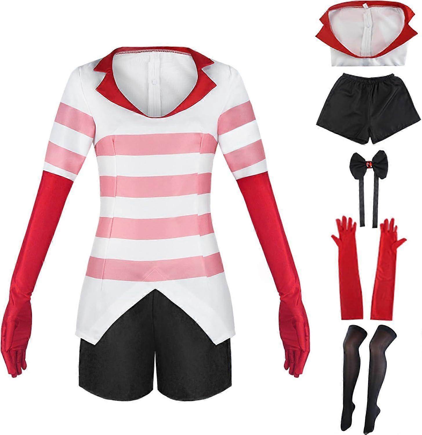 Suffolly Hazbin Hotel Cosplay Costume Fancy Dress Alastor/Blitzo/Angel Dust Outfits with Dress Shorts Bow Tie Gloves Knee Socks Halloween,World Book D