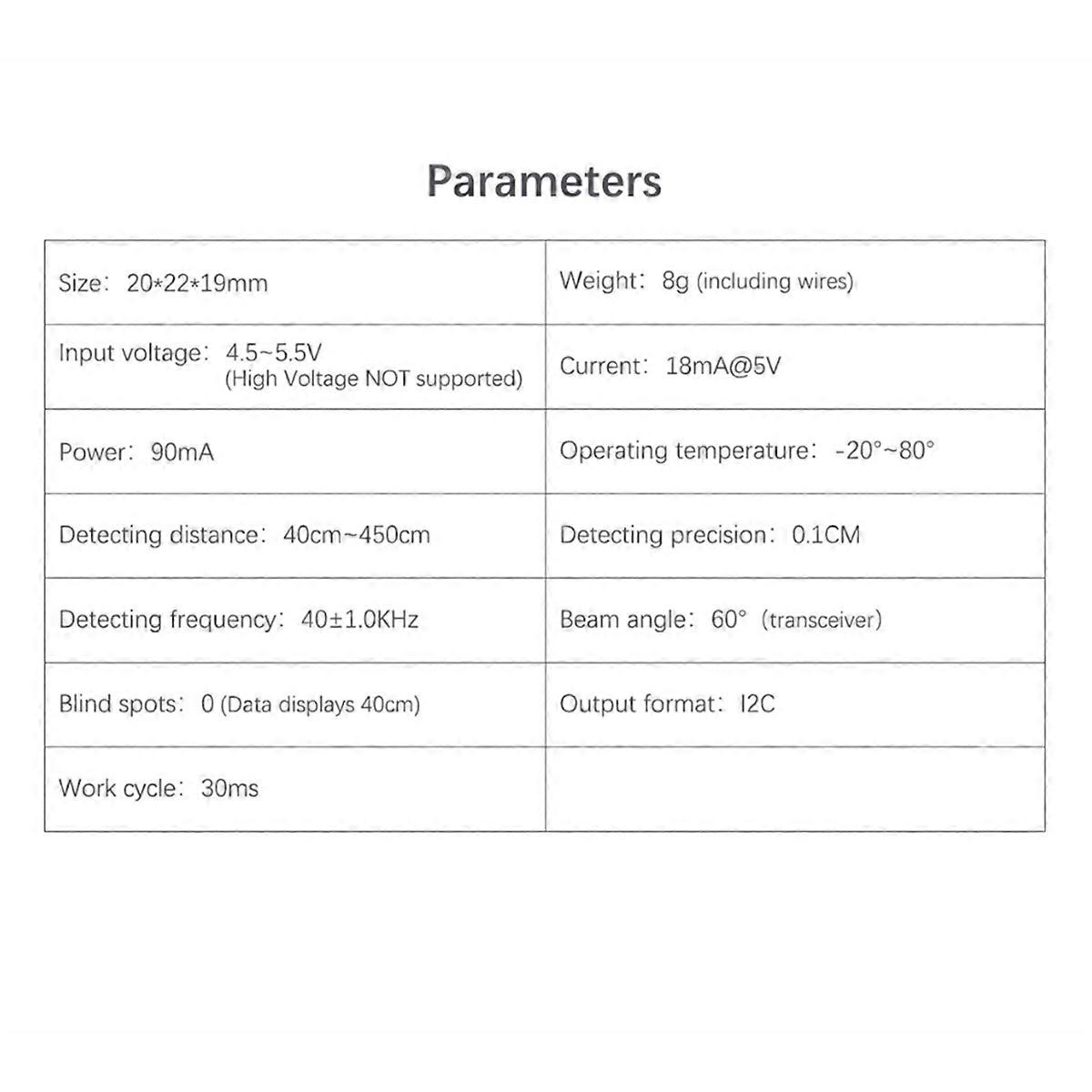 3. have to powered by LiPo battery, it cannot power by USB when you use this utrasonic sensor SUI-04.