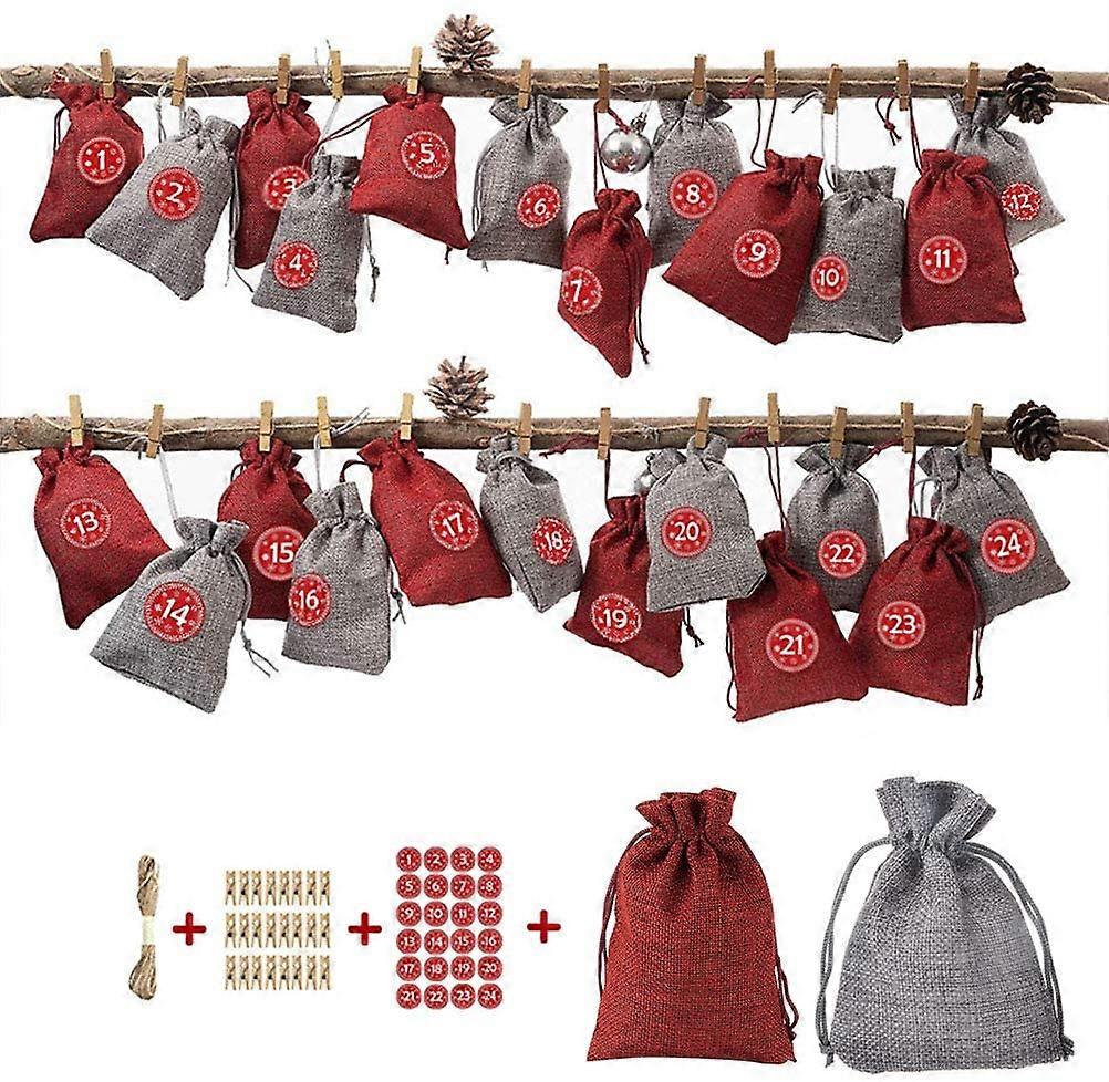 Sunrain Advent Calendar To Fill Cloth Bag, 1-24 Advent Numbers Stickers Burlap Gift Bag Christmas Calendar Handicraft Set Craft Filling Harness Bag Wi
