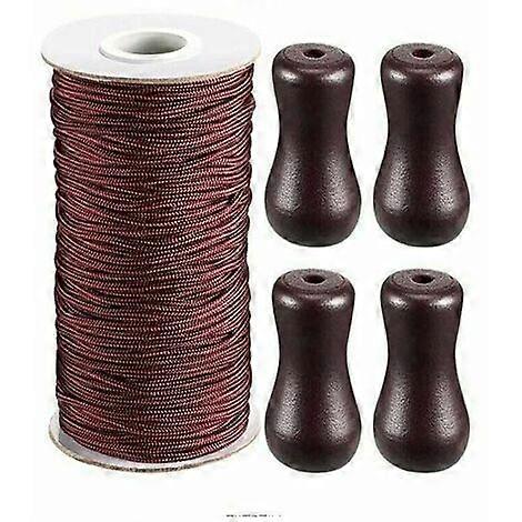 Superma Brown Braided Shade Rope 55M Roll with 4 Pieces Brown Wooden Pendant