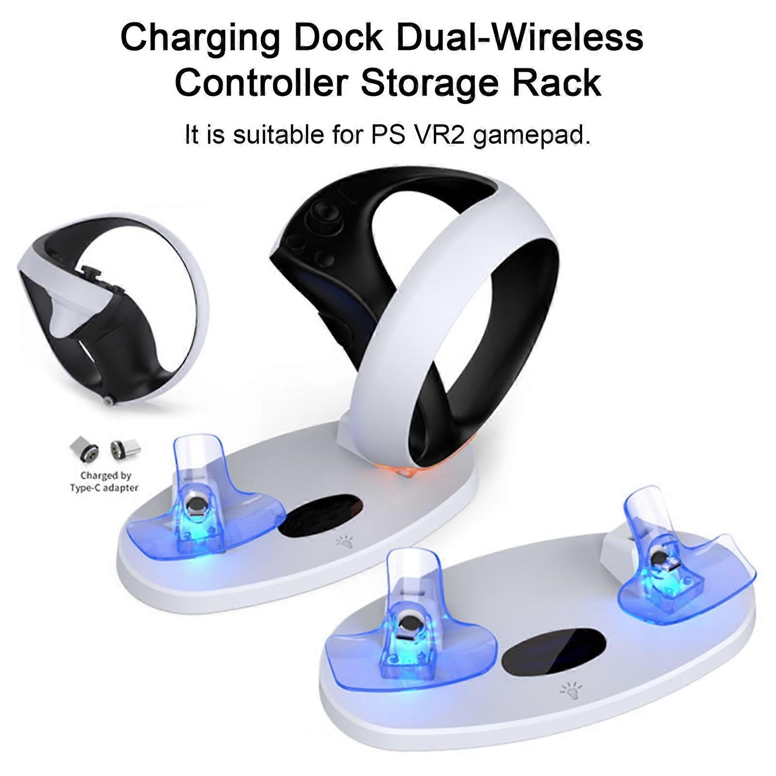 SUSUchens Charging Base Low Power Consumption Double-seat with Indicator Light Handle Charge Stand Holder with LED Light for PS VR2 White