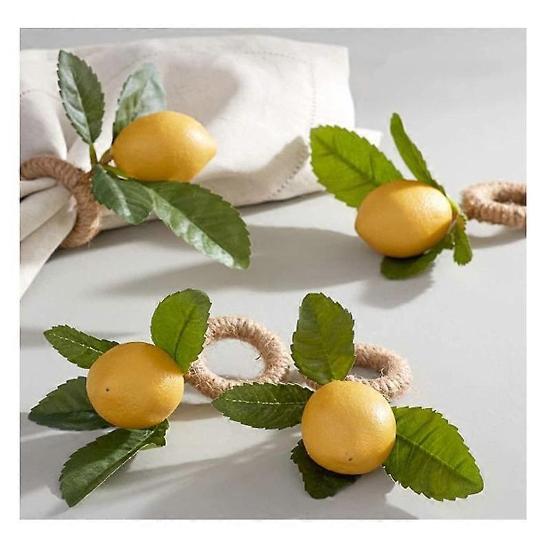 Suuyar Handmade Napkin Rings Set of 12, Yellow Faux Lemon with Vine Napkin Ring for Wedding, Dinner Party, Banquet, Serviette for Christmas, Thanksgiv