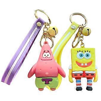 Suuyar 2個スポンジボブキーホルダー-かわいいスポンジボブキーホルダーペンダント、スポンジボブフィギュアキーホルダー女の子と男の子のバッグチャーム車のペンダントキーホルダー