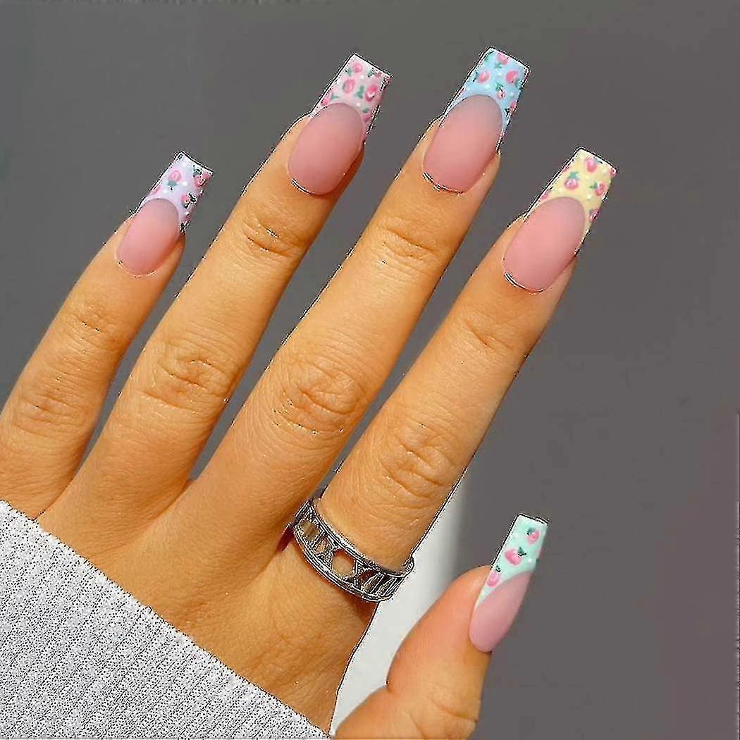 Szcc Cute French Press On Nails Matte Colorful Long Fake Nails Coffin Pre Tips Designed Ballerina Full Cover Acrylic False Nails Sets For Women And