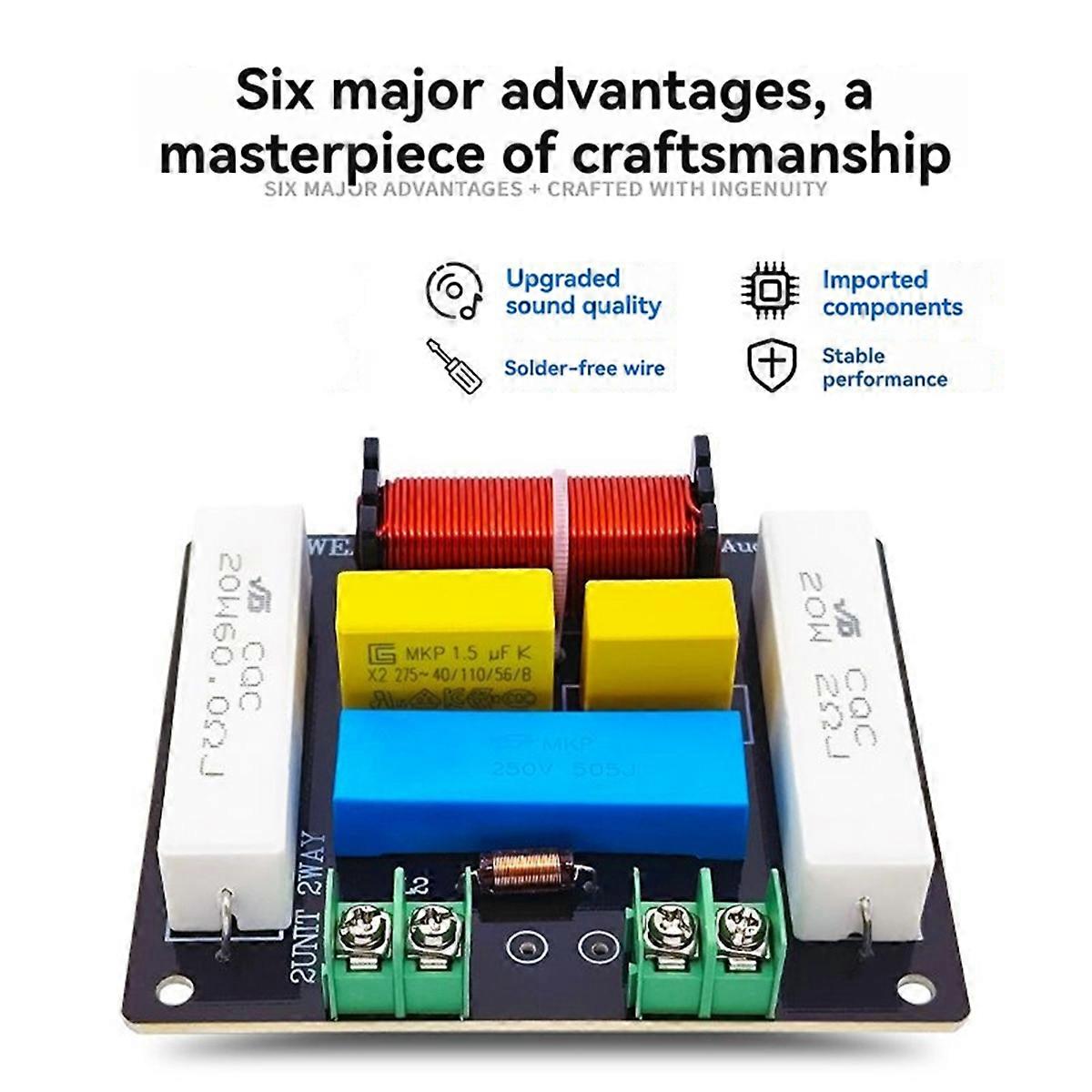 Optimal Sound Distribution: This 300W T-101 speaker crossover is expertly designed to clear separation of frequencies, distributing lows and highs for optimal sound quality. Versatile Use: Perfect for both KTV environments and stage setups, this 1-way frequency divider enhances audio delivery for professional audio systems. Build: Crafted with high-quality materials, the T-101 withstands regular use in demanding professional audio settings. Easy Installation: Features straightforward connections for quick setup, allowing you to enhance your speaker system without professional help. Model: T-101 Channel: Single-channel tweeter Power handling: 300W () Applicable impedance: 4-8Ω Frequency response: Approximately 2000Hz-20kHz Due to different batches, there may be differences in product appearance, color, and printed text, which not affect the use. Color: As Shown Material: PCB Package Contents: 1 x Speaker Crossover Only the above package content, other products are not included. Note: Light reflection and different displays may cause the color of the item in the picture a little different from the real thing. The measurement allowed error is +/- 1-3cm.
