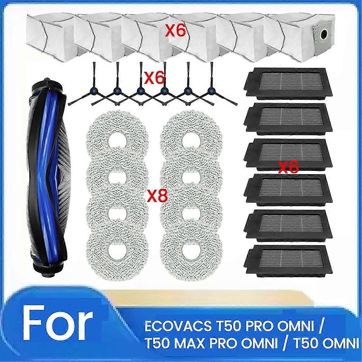 Practicality: This replacement kit is designed for T50 Max/T50 Pro/T50 Omni/T50 Pro Omni/T50 Omni vacuum cleaners to a and provide optimal performance for your device. It is a must-have household cleaning tool and an indispensable accessory for maintaining a clean and hygienic home environment. It is designed to effectively collect dirt and debris to your floors are spotless. This vacuum cleaner accessory has a sturdy structure that prevents rapid wear and tear, ensuring and continuous performance, and achieving efficient cleaning makes it a reliable choice for daily cleaning. Component Set: Features a main brush suitable for all floor types, a side brush for enhanced corner cleaning, a true HEPA filter for capturing fine dust, and a mop cloth for floor cleaning. Make sure you have enough replacements to keep your device running at its best for longer. User-friendly Installation: These accessories are designed for easy installation and can be quickly installed in your vacuum cleaner. Designed to meet production standards, they are easy to install. They are designed to fit the model precisely and can be quickly replaced without professional help. Maintenance recommendations: To maintain the performance and life of the vacuum cleaner, it is recommended to regularly clean and replace accessories as needed. To optimize cleaning efficiency. These accessories that your vacuum cleaner operates efficiently, ensuring that every area passed by the robot is thoroughly and carefully cleaned.<br><br>Color: As Shown Material: plastic<br><br>Package Contents: 1 x roller brush 6 x side brushes 6 x filters 6 x dust bags 8 x mop cloths<br><br>Only the above package content, other products are not included. Note: Light reflection and different displays may cause the color of the item in the picture a little different from the real thing. The measurement allowed error is +/- 1-3cm.