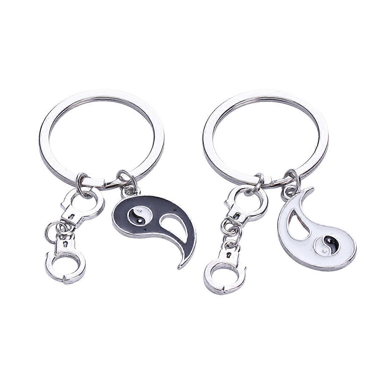 Tai Diagram Keychain Pendant for Decoration Silver Metal Couple Friend Gift 1 Pair
