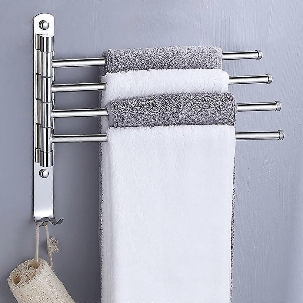 TCGG-180 Degree Swivel Towel Bar, Chrome Wall Mounted Towel Rack with 4 Arms, Bathroom Towel Rack, SUS304 Stainless Steel Towel Warmer with Hook
