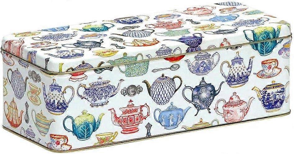 Store your tea in style with our Teapots Long Rectangular Storage Tin Featuring a vintage teapot design, this tin will bring a charming touch to your kitchen. Its long rectangular shape provides ample storage space, while the airtight lid ensures your tea stays fresh. A must-have for any tea lover Product Details:Teapots Vintage Inspired Storage TinRectangular Metal TinMeasuring Approx Storage For Stationary, Sewing Items, Crafts, Small Toys & More High-Quality Metal Tin Lovely Gift Idea