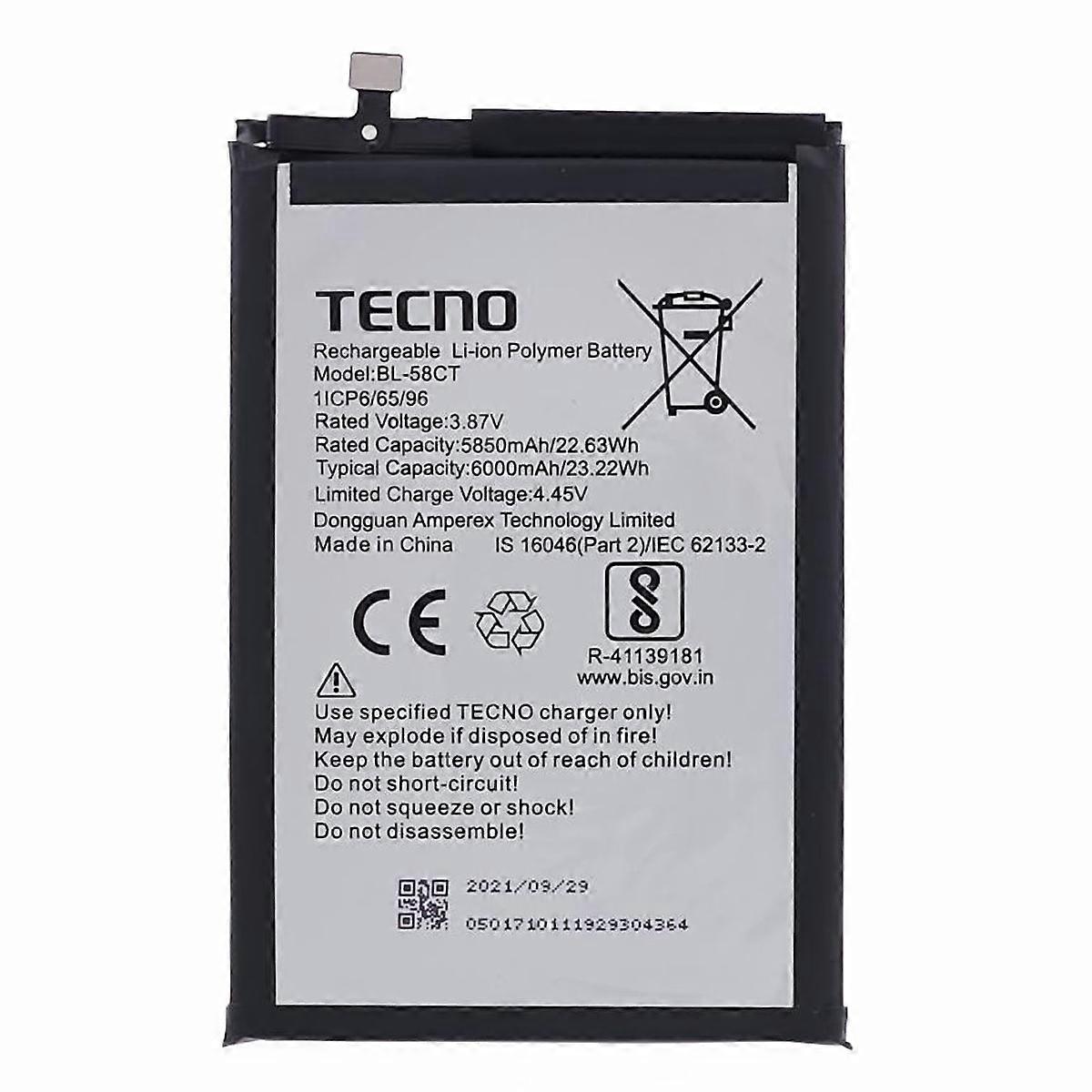 For TECNO Spark 7 4G/7T 4G 3.87V 5850mAh Li-Ion Polymer Battery Assembly Part (Encode: BL-58CT)