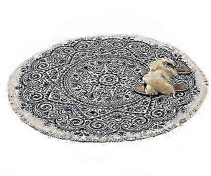 Tflycq60cm Morocco Round Rug Boho Style Tassel Cotton Fabric Carpet Decor(Blue)