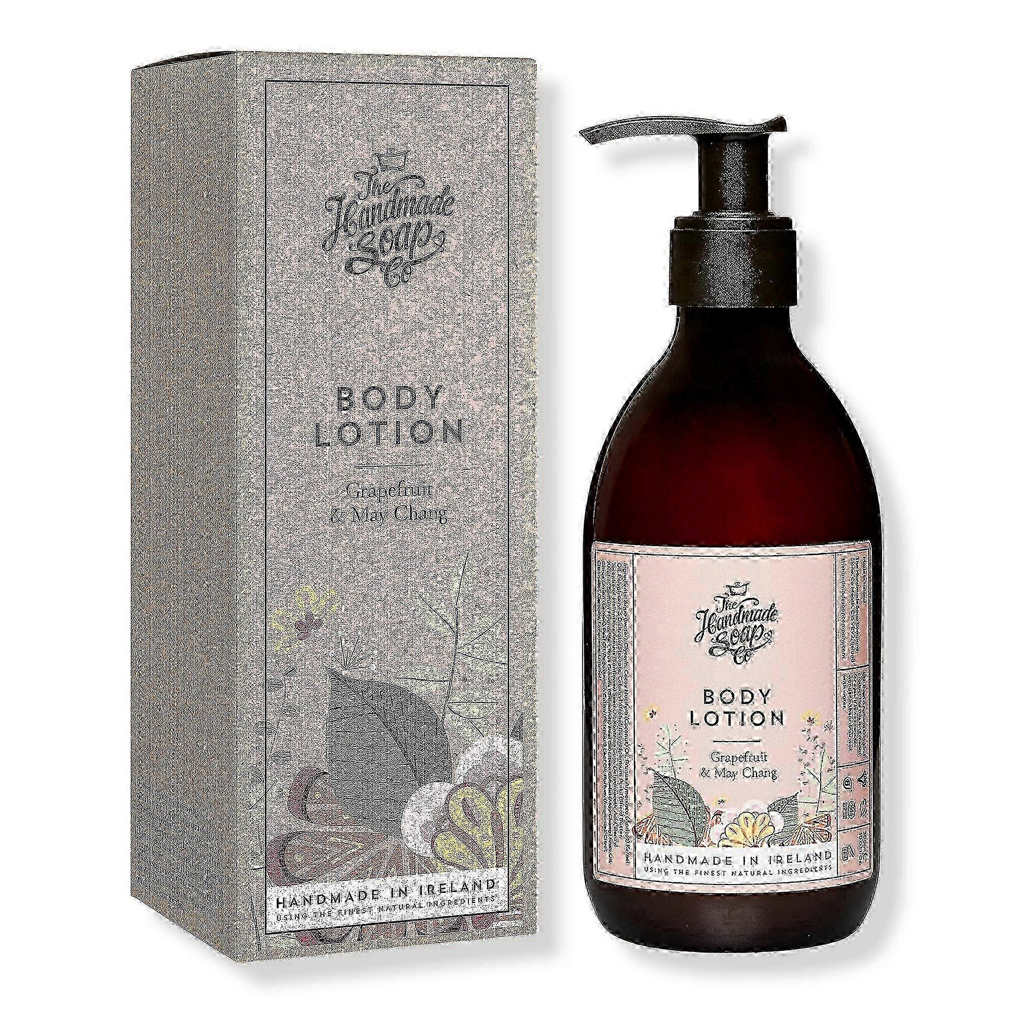 The Handmade Soap Co.'s all-natural Grapefruit & May Chang Body Lotion enriches, moisturizes and refreshes the skin.BenefitsThe zesty grapefruit is balanced with sweet, floral may chang in a lotion which leaves a lasting fragranceGentle and easily-absorbed, this lotion contains no harmful chemicals, so it's good for sensitive skinFeaturesFree from parabens, SLS, petrochemicals & other syntheticsVegan friendlyNo single-use plastic, this bottle is made from 100% recycled materialsThe box is made from FSC Certified sustainable card from managed forestsActive Ingredients: Perfect for after your shower or bath, morning or night but particularly great for those early mornings. Lotion up with 3-4 pumps starting at your feet and working your way up to help boost circulation. Precautions: Even natural products like these aren't meant for eyes, if it happens to wander in there, rinse well with water.Suggested Use: The Handmade Soap Co.'s all-natural Grapefruit & May Chang Body Lotion enriches, moisturizes and refreshes the skin.The zesty grapefruit is b. . .Expiration Date: We have fresh stock each week with exceptional expiration dates prior to APRIL 2024. Products will expire no later than six months to 1 year after receipt.Product Packaging: Please note that some manufacturer may often change their packaging. This product may arrive different from what is pictured. We will always ship the most up-to-date packaging to our customers. Please contact us if you have any questions about this product or would like to request an older version of this product.Healthcare Disclaimer: Content on this site is for reference purposes only. OTC Shoppe Express does not represent or warrant that the nutrition, ingredient, allergen and other product information on our Web or Mobile sites are accurate or complete, since this information comes from the product manufacturers. On occasion, manufacturers may improve or change their product formulas and update their labels. We recommend that you do not rely solely on the information presented on our Web or Mobile sites and that you review the product's label or contact the manufacturer directly if you have specific product concerns or questions. If you have specific healthcare concerns or questions about the products displayed, please contact your licensed healthcare professional for advice or answers.
