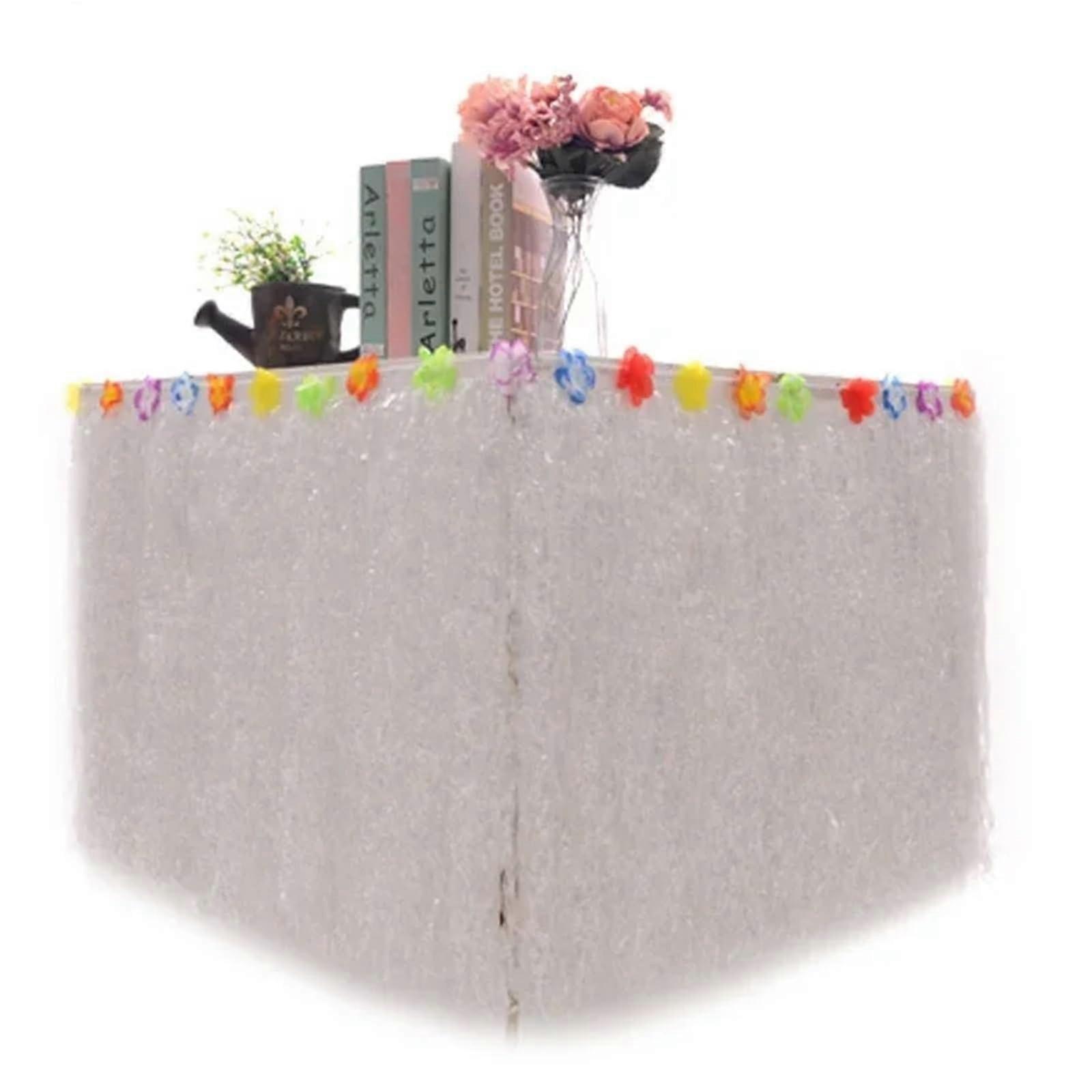 Tischröcke 276x75cm Party Grass Table Skirt Summer Beach Birthday Wedding Decor (White)