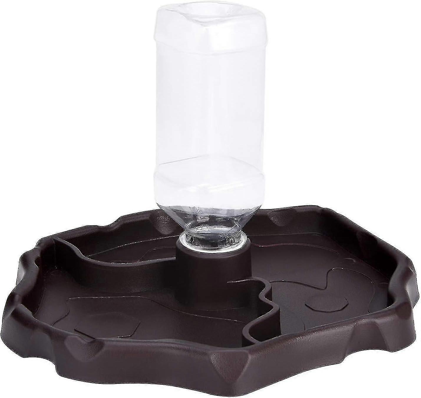 Tizzy Reptile Water Dispenser, 2-in-1 Anti-overflow Bowl Food Dispenser, Plastic Bowl for Tortoise Gecko - Brown