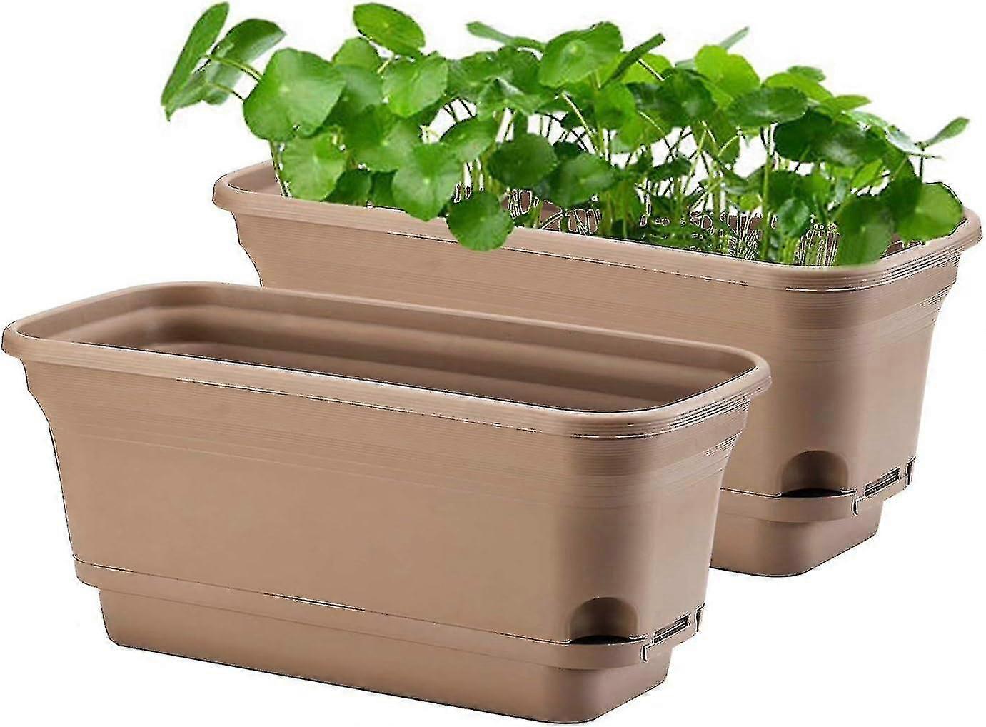 Tizzy 40cm Self-watering Plant Pot Rectangular Plastic Planters, Modern Decorative Flower Pot For All Plants, Flowers, Herbs - Brown, Set Of 2