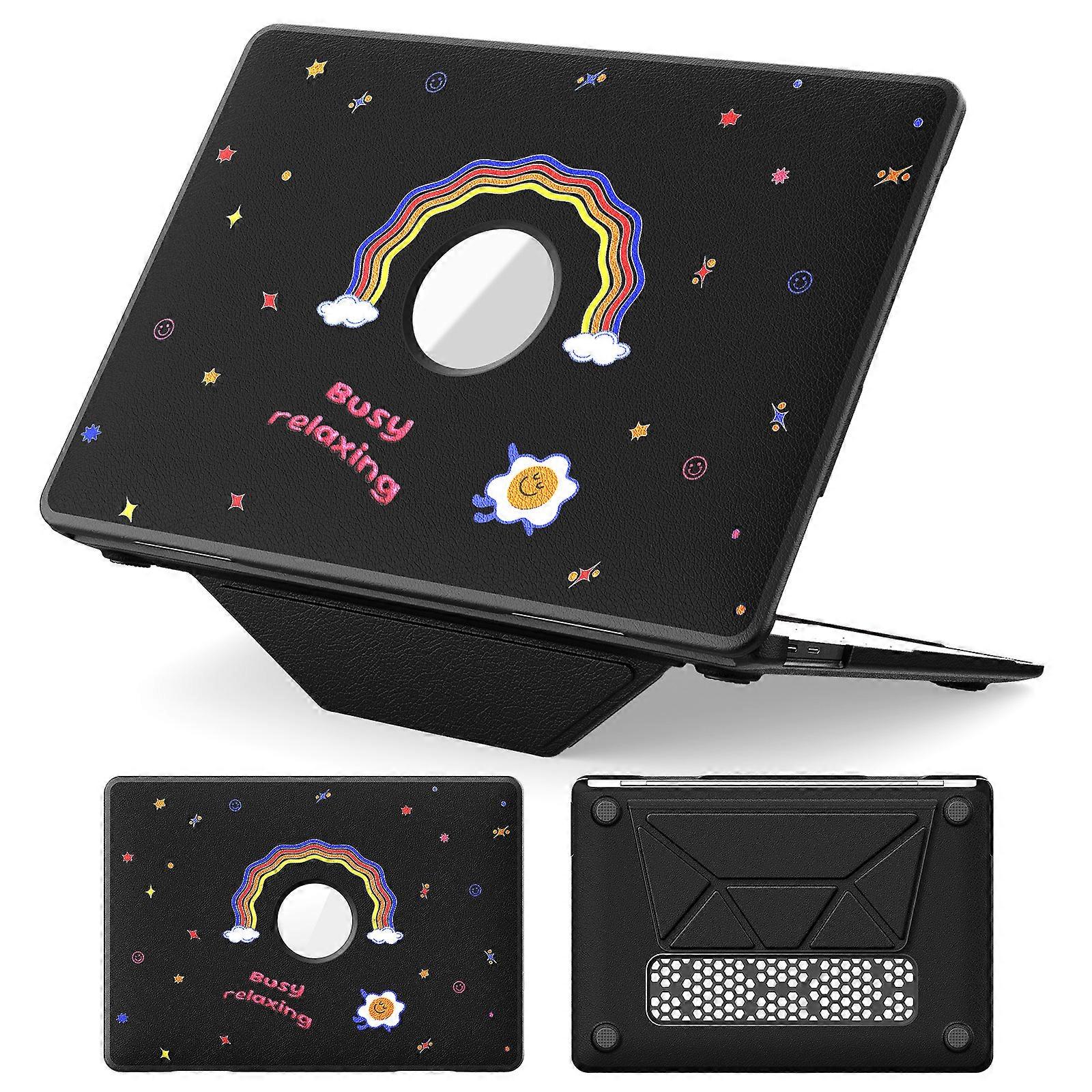 TKdaddy Pattern Printing Laptop Case for MacBook Air 13 inch (2020) / (2018) A2337 M1 A2179 A1932 Notebook Kickstand Cover Rainbow / Black