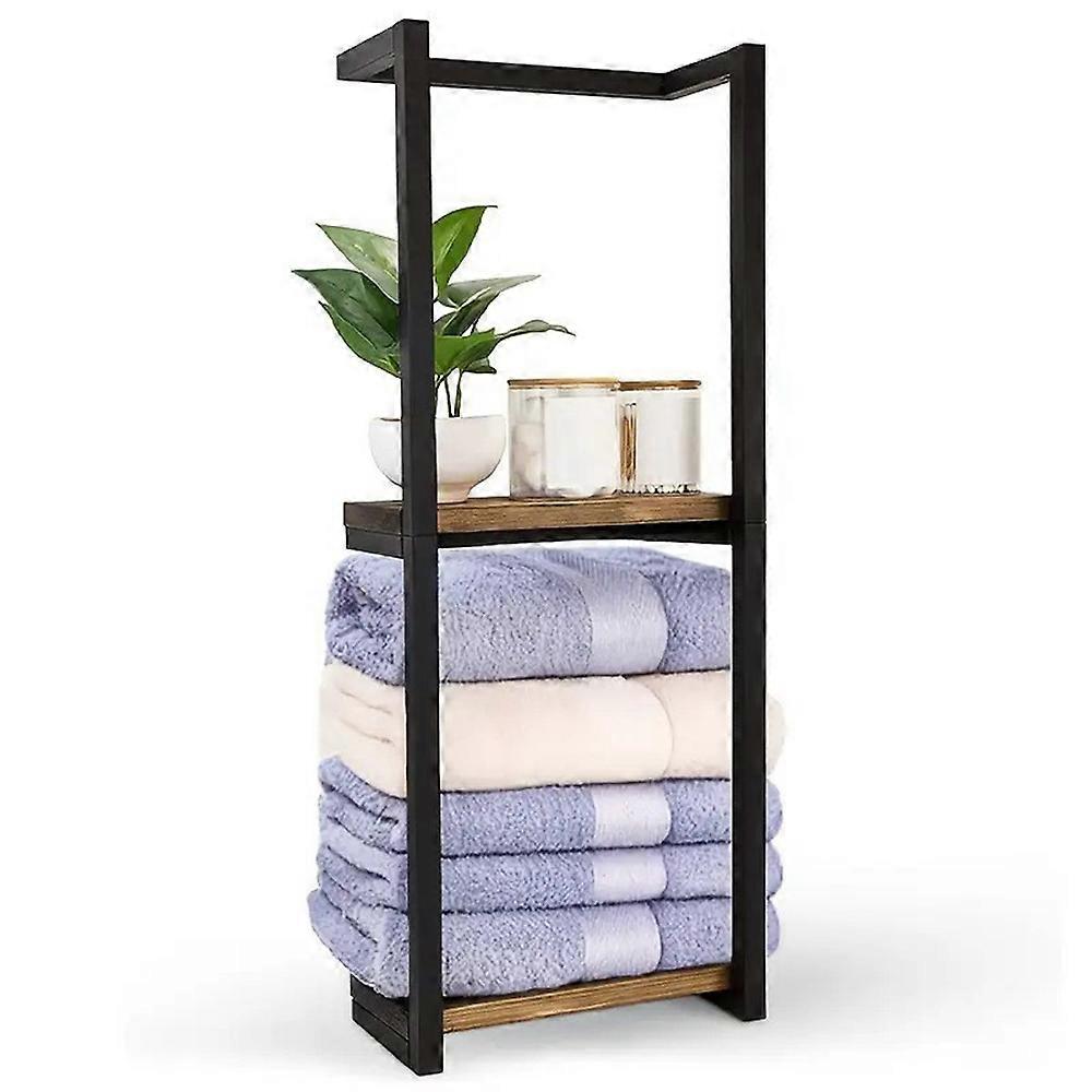 TKdaddy 2 Tiers Bathroom Towel Rack Wall Mounted Metal Towel Holder Storage Organizer, 28.5 x 14 x 77cm